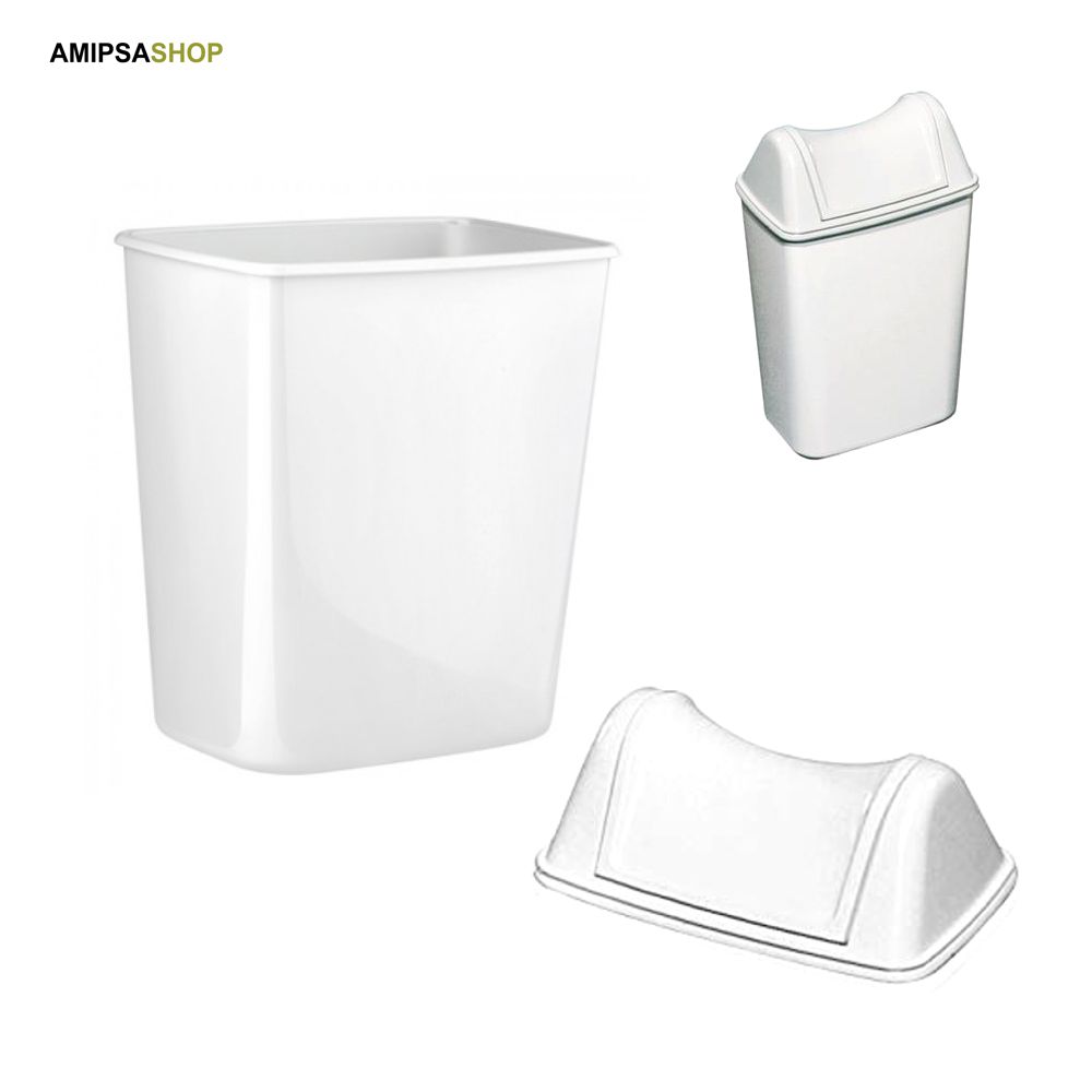 In weisem stossfestem ABS – mit Kippdeckel – Korbmasse LxBxH 24x17x28 cm – Deckelmasse BxTxH  24x17x8 cm – Fassungsvermögen 8 Liter