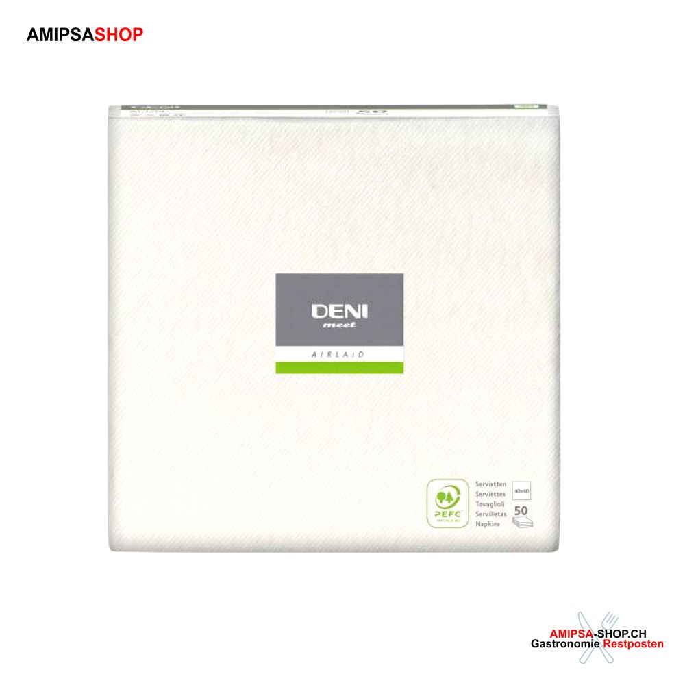 Airlaid Servietten Deni meet, Pack 50 Stück, 1/4 Falz, 40 x 40 cm, weiss