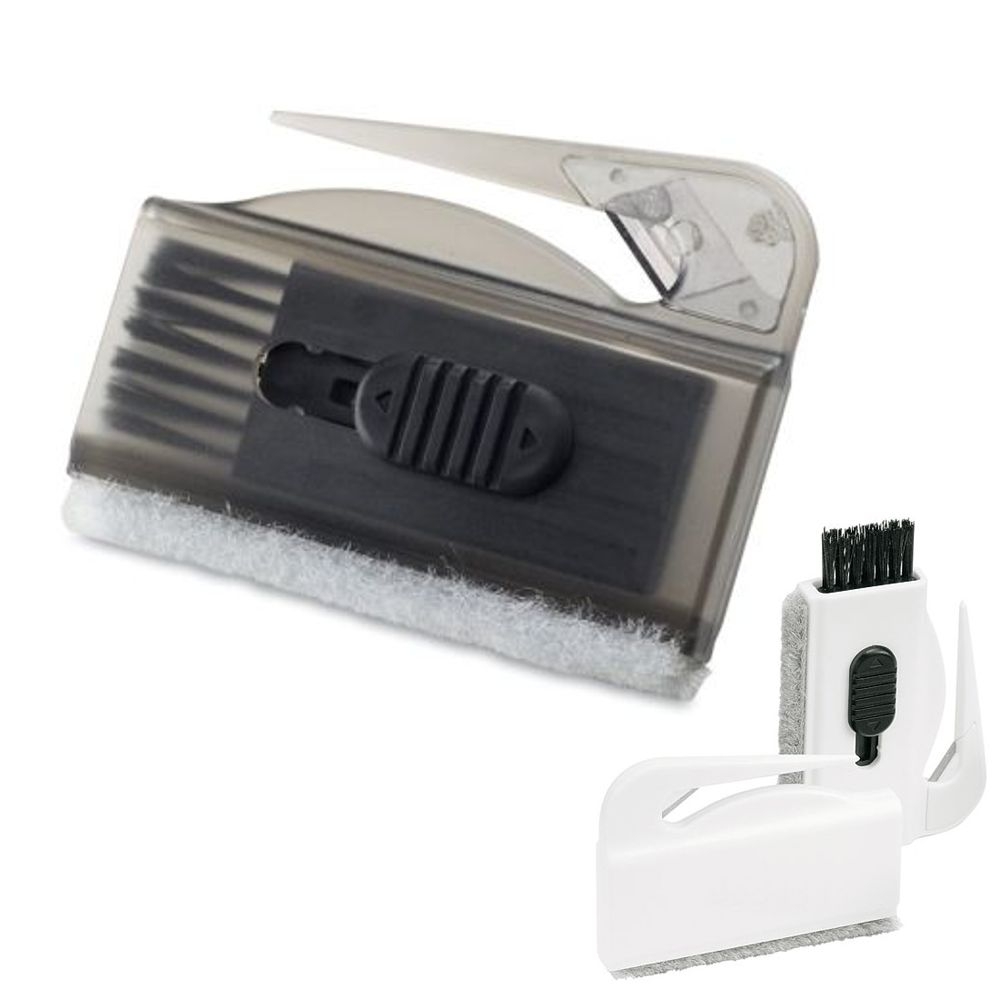 Multifunktionsbrieföffner mit Tastaturpinsel + Bildschirmreiniger, Format: ca. 70 x 51 mm, Material: Polystyrol PS. Farbe: Braun Durchsichtig