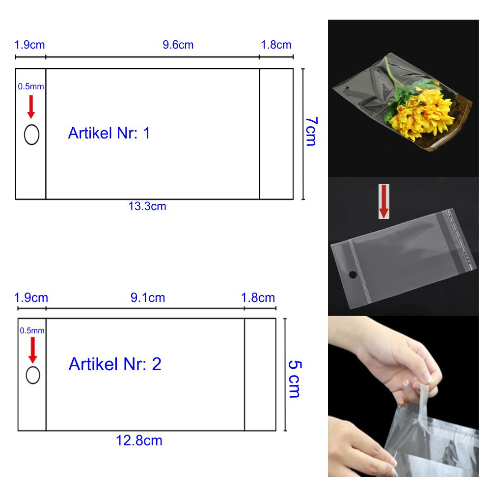 Cellophanbeutel Selbstklebende mit Hängen Loch Preis pro 1 stück