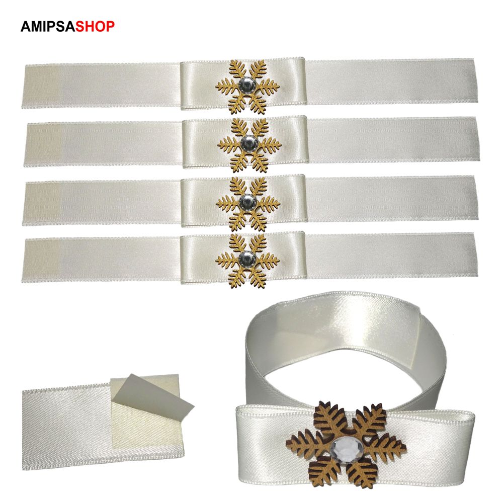 Dekoband Schleife Satin 5er -Set, Satin-Geschenkbänder mit Schneeflocken-Dekor Farbe Perlweiss, die Bänder haben eine Länge von ca. 24.5 cm und eine Breite von ca. 2,6 cm, jedes Band hat 2 Selbstklebe-Etiketten und kann so auf die richtige Länge befestigt werden, ideal für kleine Geschenk-Böxli, es sind immer 5 Stück in einem durchsichtigen Beutel verpackt