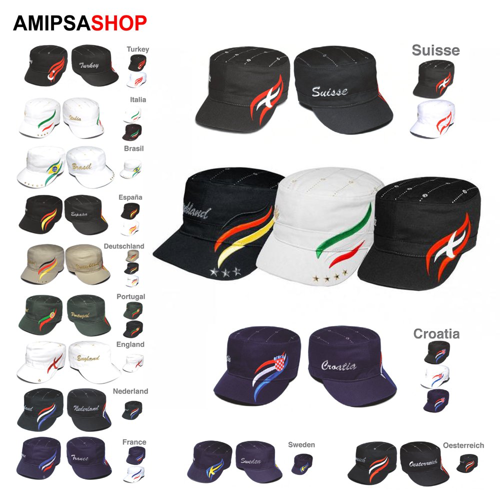 Wählen Sie aus diversen Ländern das Ihrige! Egal wo Sie sind: ob im oder vor dem Stadion – Mit diesem Armycap werden Sie sicherlich auffallen!