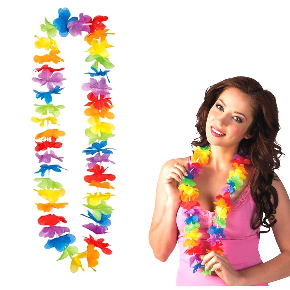 Hawaii Blumenkette Die Hawaii Blumenketten wird gerne, aufgrund des niedrigen Preises, in größeren Mengen bestellt. Die einzelnen Blüten der Kette haben jeweils eine andere Farbe. Farbe: bunt Ø: 100 cm Umfang