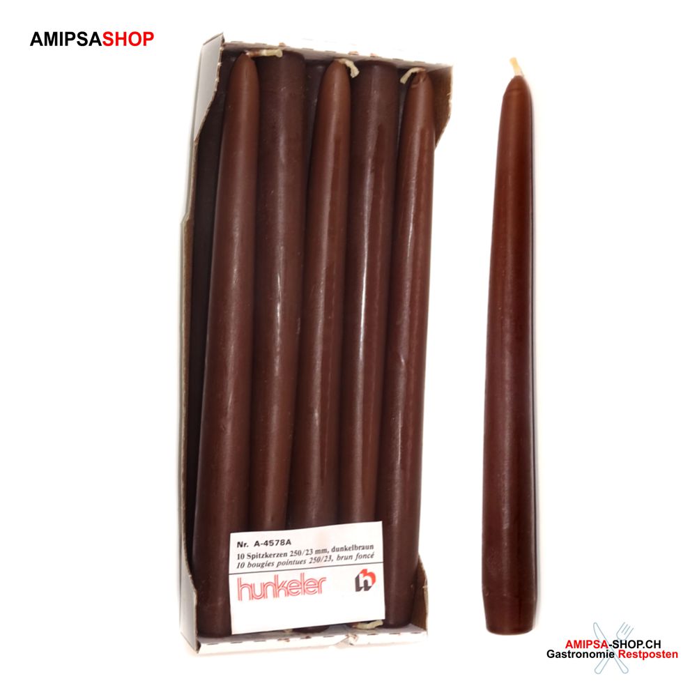 Hunkeler Spitzkerzen 250 x 23 mm Dunkelbraun 10er Set, Brenndauer: ca. 8 h