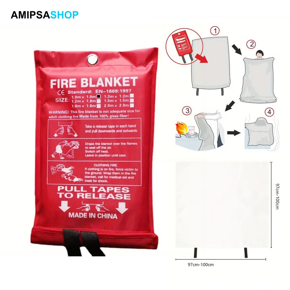 Löschdecke EN 1869, Löschdecke Glasfaserim Nylonsäckchen, hitzebeständig bis 550 °C, Fire Protect 1 x 1 m