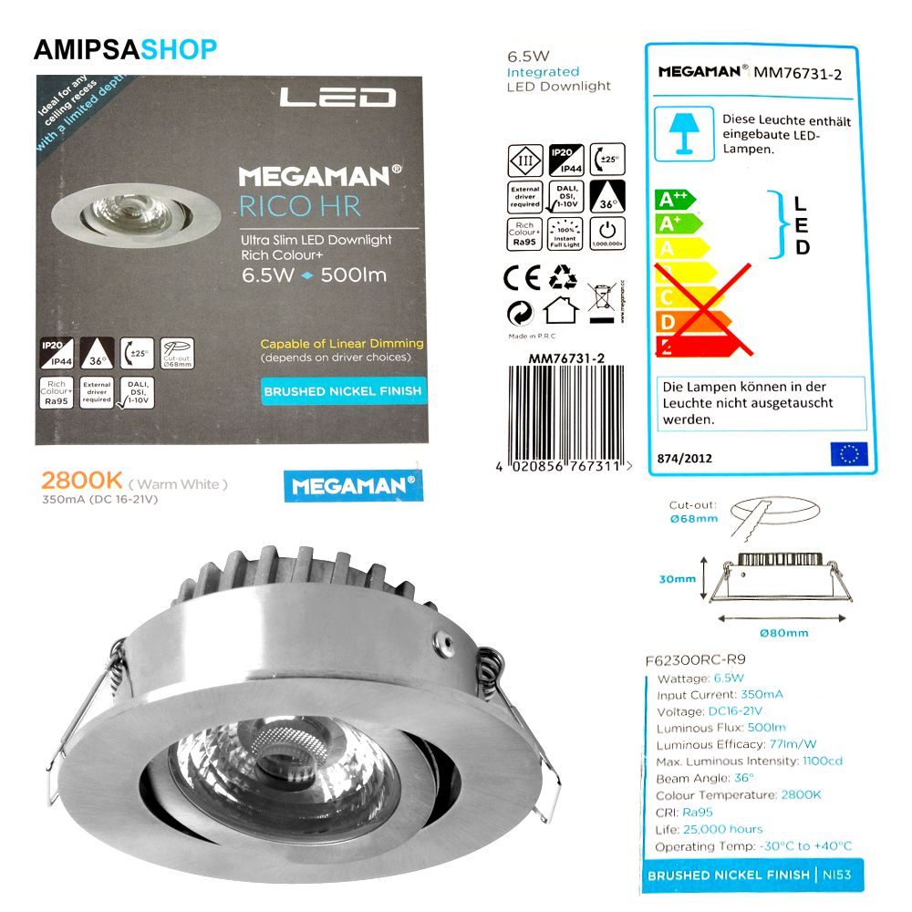 Megaman LED Einbaustrahler RICO HR IP44 6.5W 2800K 500lm 36°