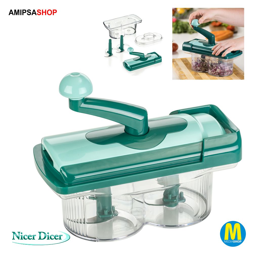 Nicer Twist Set, Genius® (7tlg.). Mit dem Nicer Twist können Zutaten gehackt, verrührt, verquirlt, püriert und zerkleinert werden – ohne Mühe und ganz nach Wunsch! Mit der Handkurbel haben Sie „es selbst in der Hand“, ob Sie ein feines oder grobes Ergebnis möchten – die perfekte Schneid-Kontrolle! Mit dem Nicer Twist ist schnelles und sicheres Arbeiten garantiert! Er ist ideal zur Zubereitung von Dips, Saucen, Eiscreme, Kräutern, Füllungen, Hackfleisch, Reibekuchen und vielem mehr! Dieses Set beinhaltet: 1 Mix-Behälter. 1 Handkurbel. 1 Kurbel-Deckel. 1 Kurbel-Unterteil. 1 transparente Abdeckung. 2 Klingeneinsätze. Handkurbel: Einfachste, mühelose Handhabung und absolute Schneid-Kontrolle! Schnelles und zielgerichtetes Arbeiten mit stets perfekten Ergebnissen! Mix-Behälter: Integrierte Führungsdornen für sicheren Halt der Klingeneinsätze! Füllmenge: 1.250 ml. Direktes Auffangen der zerkleinerten Lebensmittel für sauberes und übersichtliches Zerkleinern! Transparente Abdeckung: Stabilisierung der Klingeneinsätze für eine sichere und effektive Arbeitsweise! Einfüllöffnung für flexibles Hinzufügen von Flüssigkeiten, Gewürzen usw. Schutz vor Spritzern auf Kleidung oder Arbeitsfläche! Klingeneinsätze: Jeweils mit drei scharfen Säbelklingen ausgestattet für perfekte Ergebnisse! Zerkleinern auch empfindlichste Lebensmittel im Handumdrehen!
