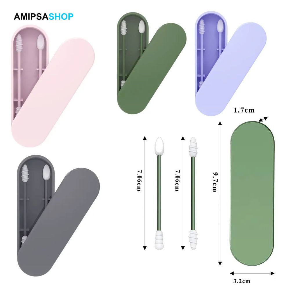 Ohrreinigung Kosmetische Silikon Stäbchen, Wiederverwendbare doppelseitige Wattestäbchen Ohrreinigung Kosmetische Wattestäbchen Stäbchen Doppelköpfiges Silikon, Wattestäbchen 2, Wattestäbchenbox 1.