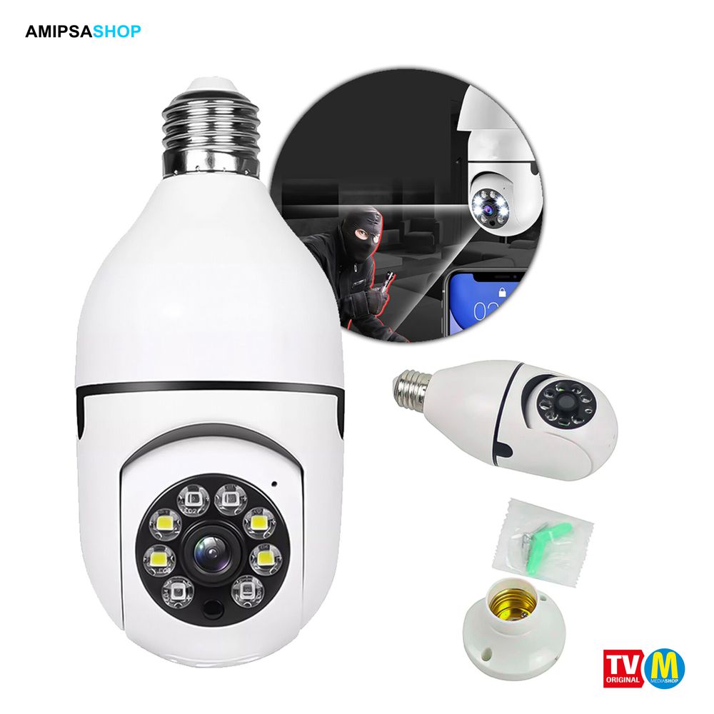 Überwachen Sie Ihr Haus mit dieser unauffälligen Kamera! Anschluss wie eine Glühbirne oder eine herkömmliche Lampe. Passt für alle Lampen-Fassungen. Zwei-Wege-Audio. Bewegungsmelder. WiFi-kompatibel. Funktioniert mit der Tuya-App auf Android und IOS. Cloud- oder Micro-SD-Aufnahme(nicht inkl). Inkl. Befestigungsmaterial.