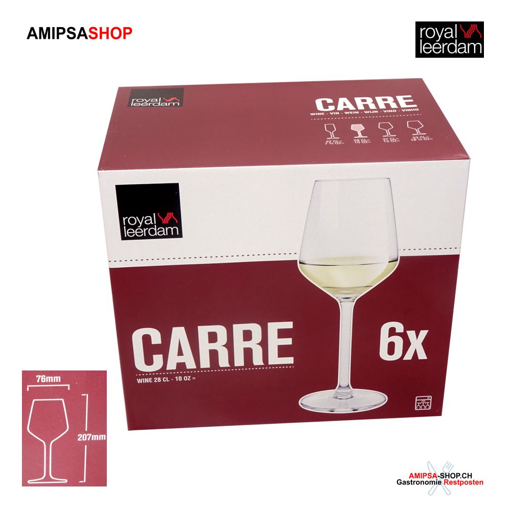 Royal Leerdam 6 White Wine Glasses Carré 28cl