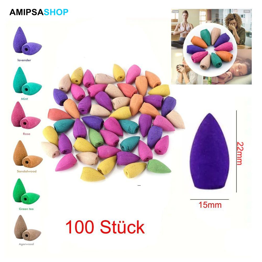Rückfluss Räucherkegel 100 Stück, 100er-Packung gemischte Aromatherapie-Räucherkegel – Verschiedene natürliche Düfte für Entspannung….