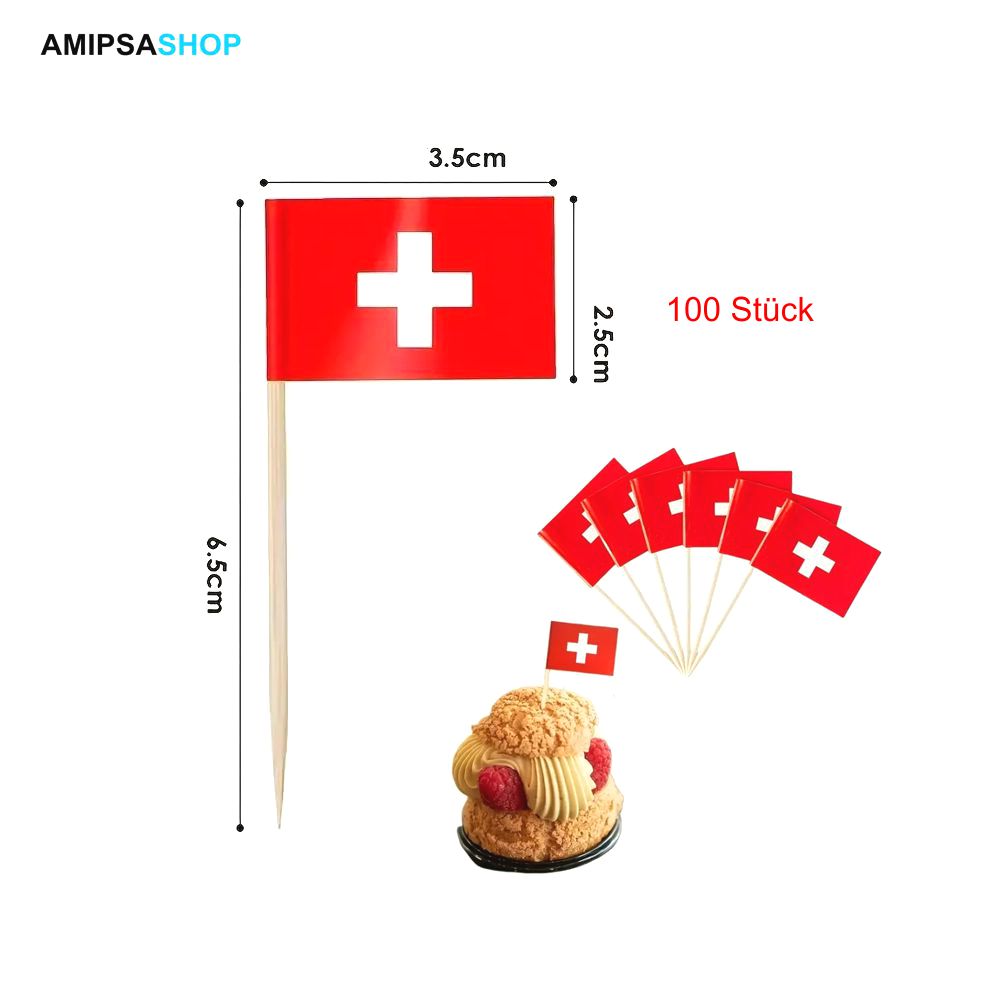 Schweizer Flagge Zahnstocher 100 Stück, Kann für den Kontakt mit Lebensmitteln verwendet werden…