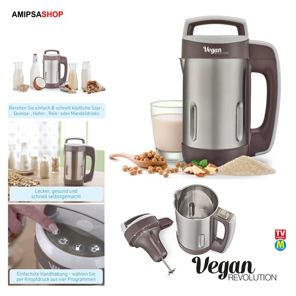 • VEGANE MILCHMASCHINE: Macht köstliche Milch aus Körnern, Samen und Nüssen. Machen Sie es zu Hause mit Ihren eigenen Zutaten. 100% natürlich, frei von Zusatz- und Konservierungsstoffen. Mit Vegan Revolution kannst du köstliche Milch aus Mandeln, Haferflocken, Kokosnüssen, Cashewnüssen, Quinoa, Samen und Soja herstellen! Nie wieder Nussmilchsiebbeutel verwenden! Verwenden Sie Ihre vegane Milch für Müsli, Kochen, Backen, Kaffee, Tee, Milchkaffee, Smoothies, Proteinshakes oder genießen Sie einfach eine köstliche Tasse.
